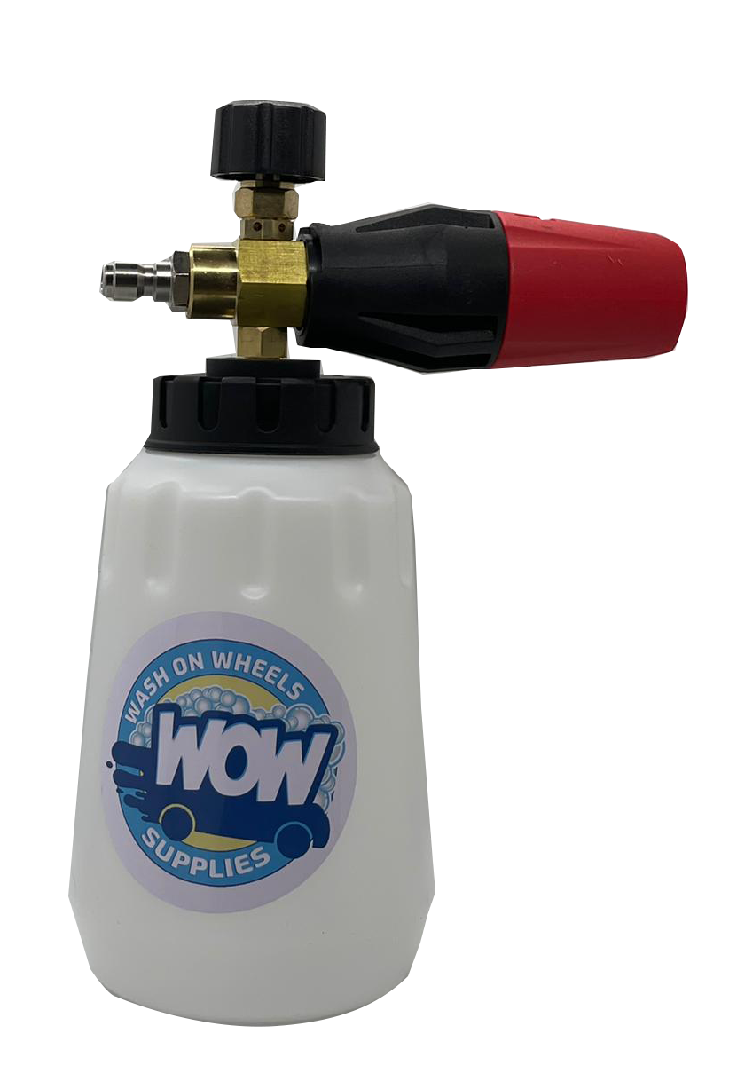 Please rinse the foam cannon with clean water after washing the car to avoid internal blockage caused by the car washing liquid/powder residue.