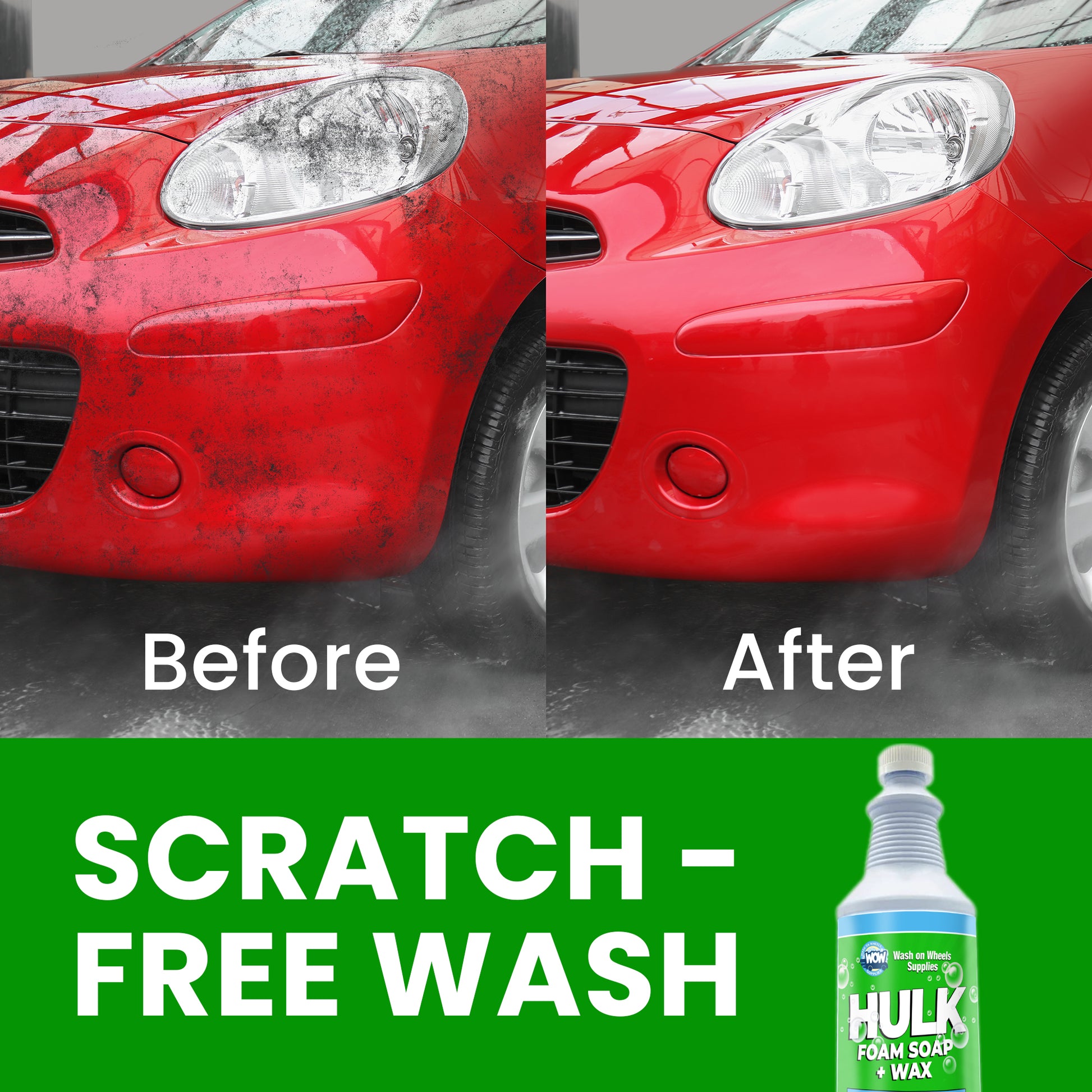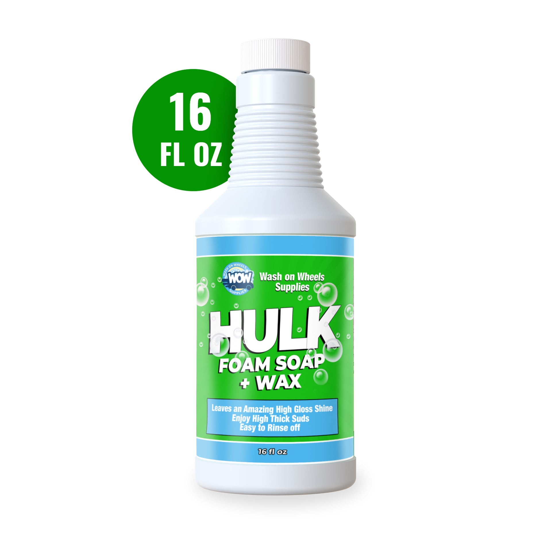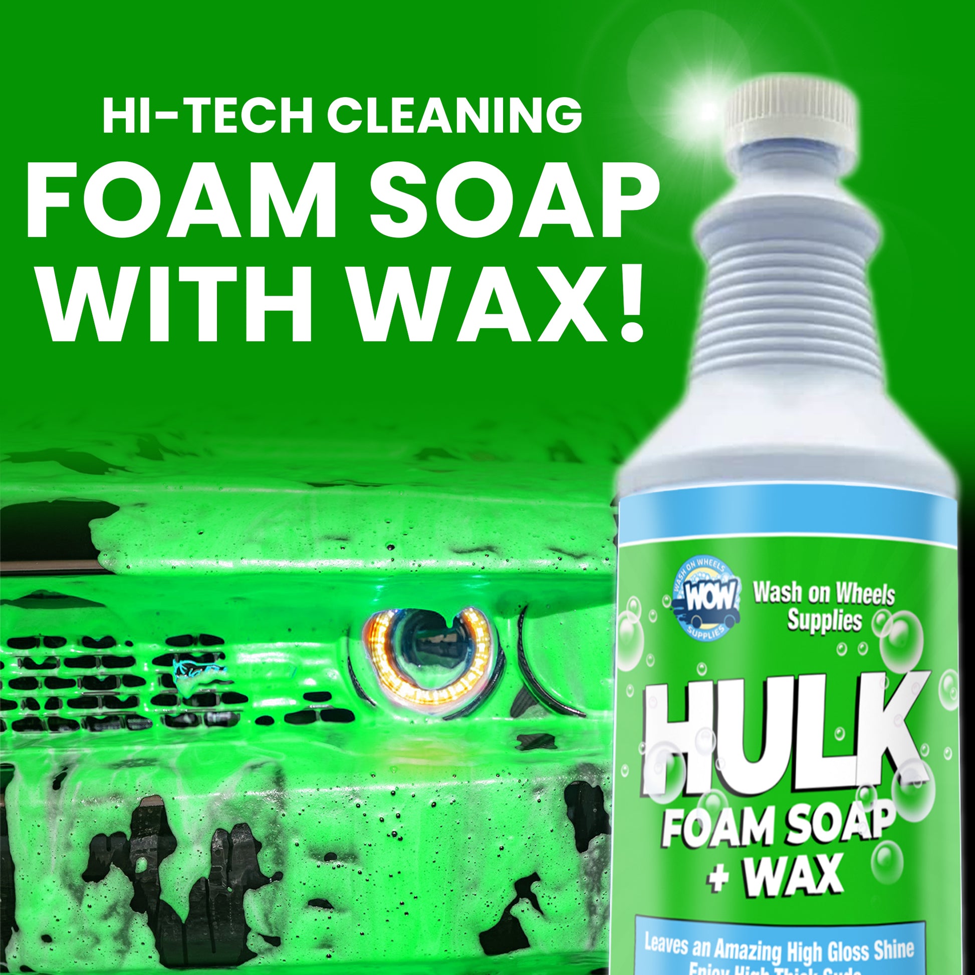 W.O.W Hulk Foam Soap is the hi-tech shampoo specifically designed to create copious amounts of cleaning suds in a foam cannon or foam gun to lubricate the surface to avoid scratching during washing.