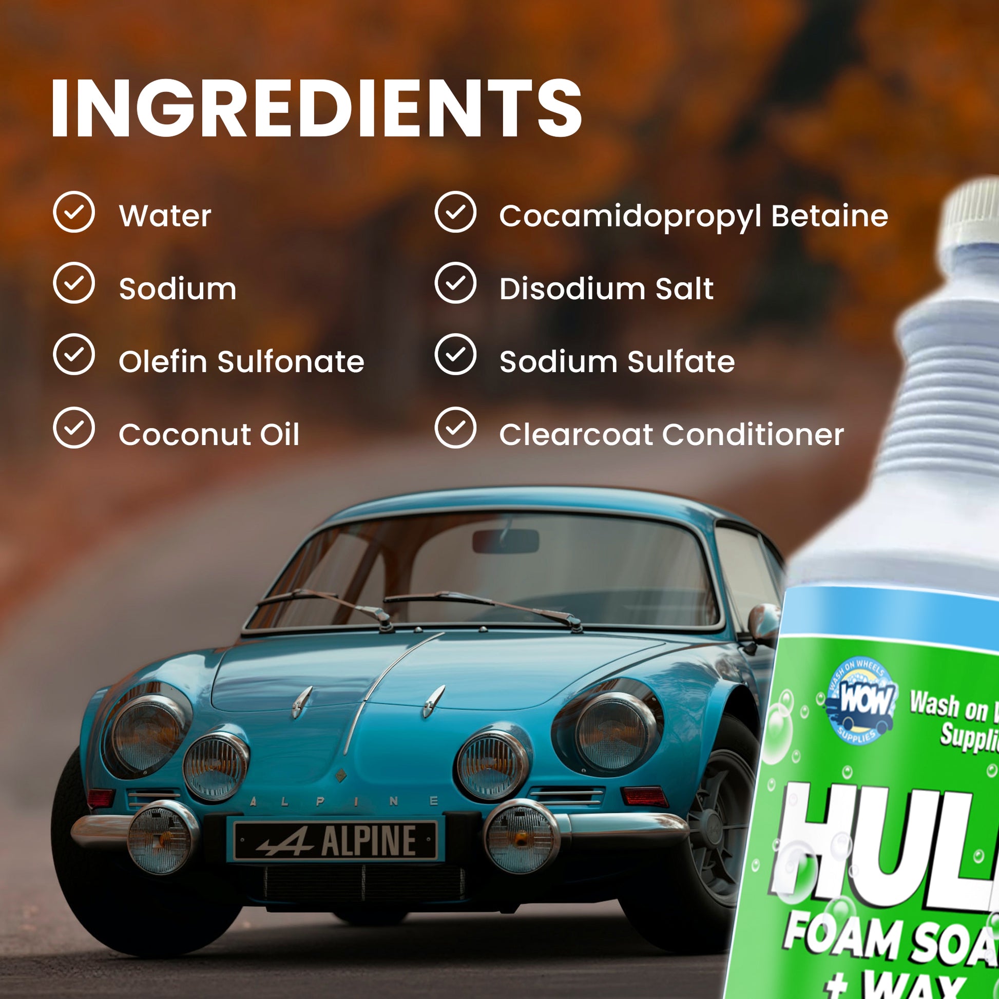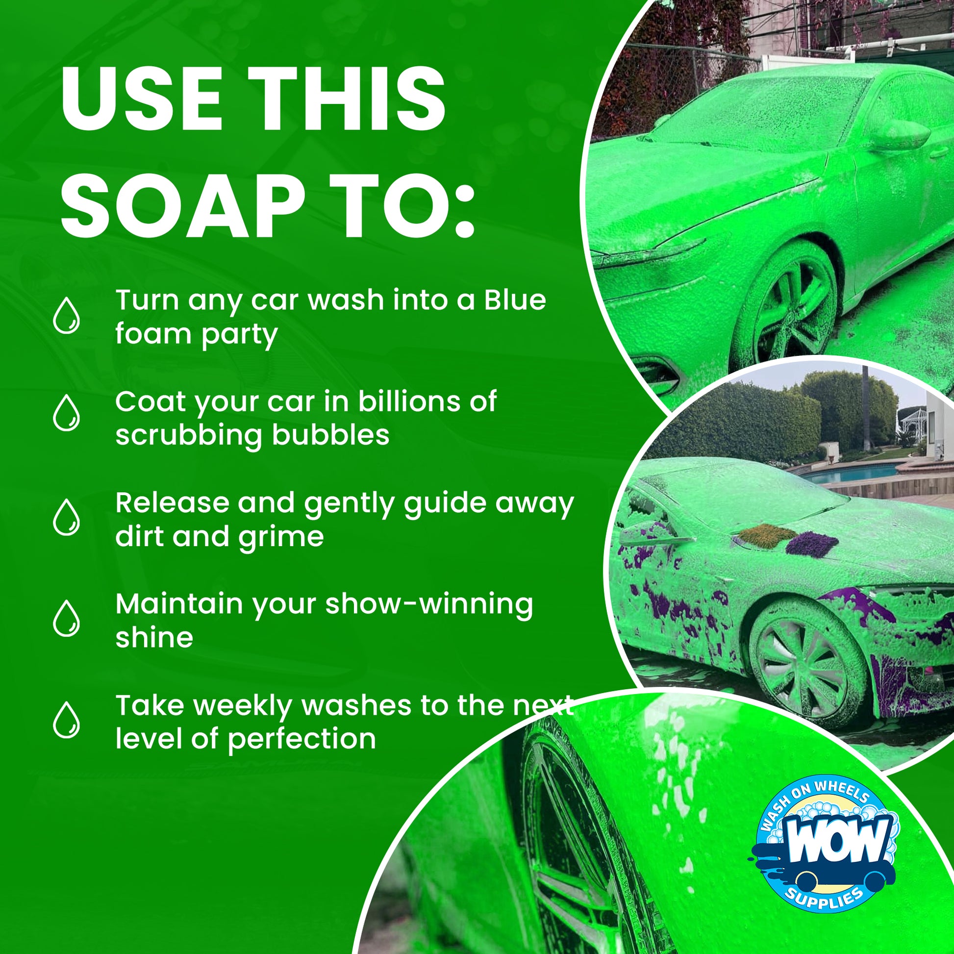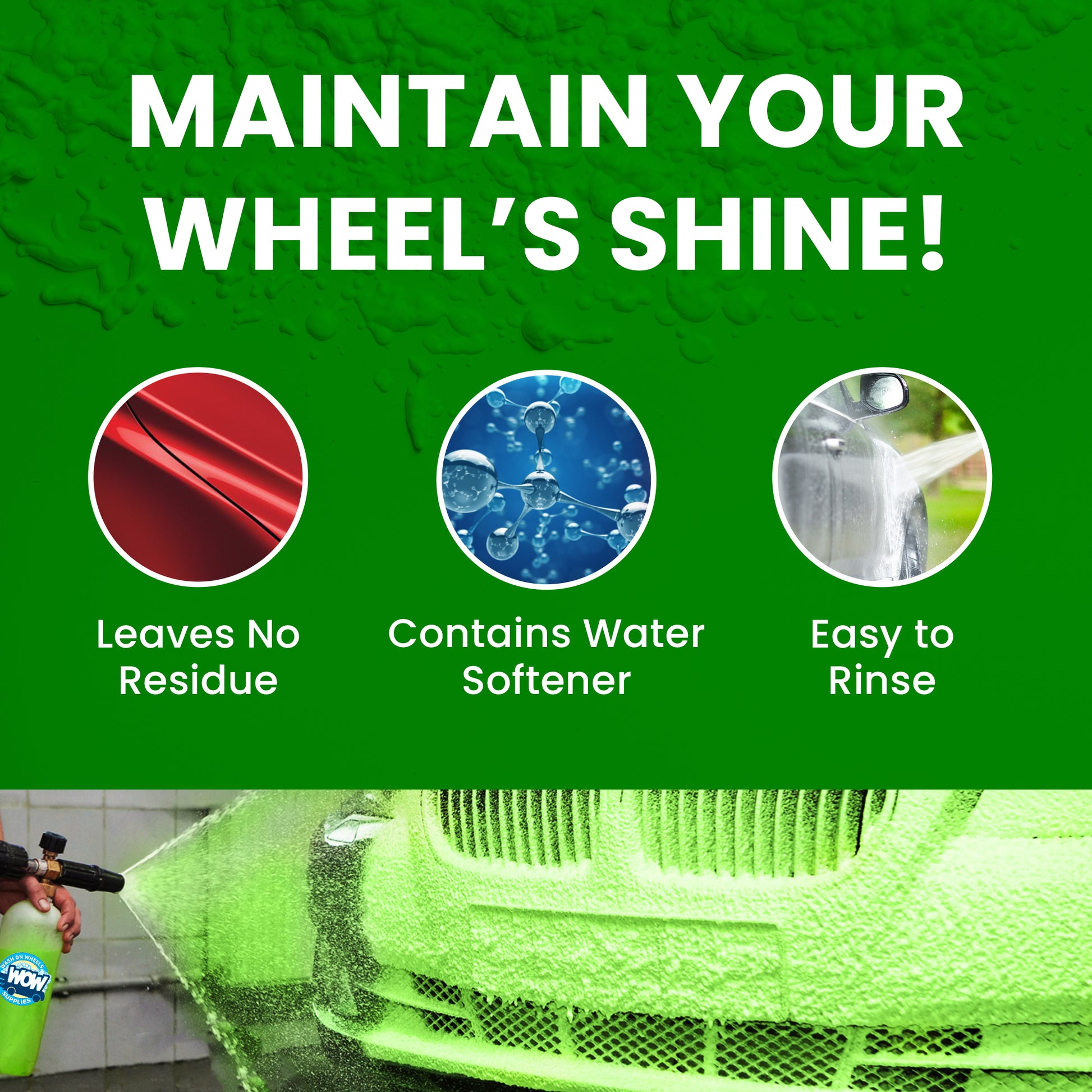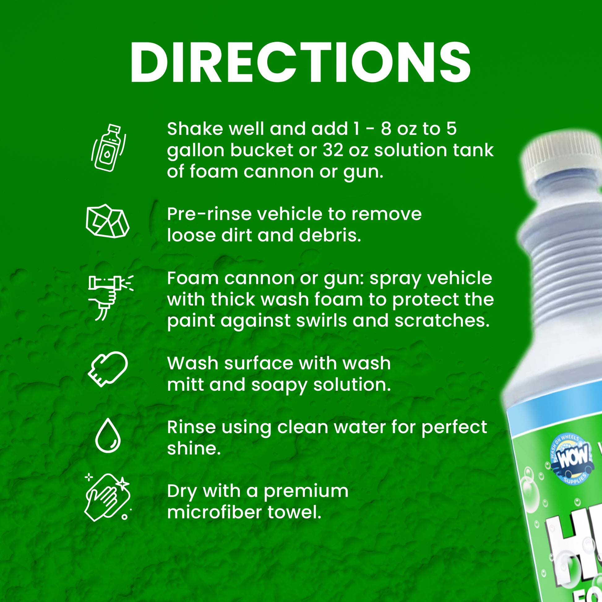 W.O.W Hulk Foam Soap is the hi-tech shampoo specifically designed to create copious amounts of cleaning suds in a foam cannon or foam gun to lubricate the surface to avoid scratching during washing.