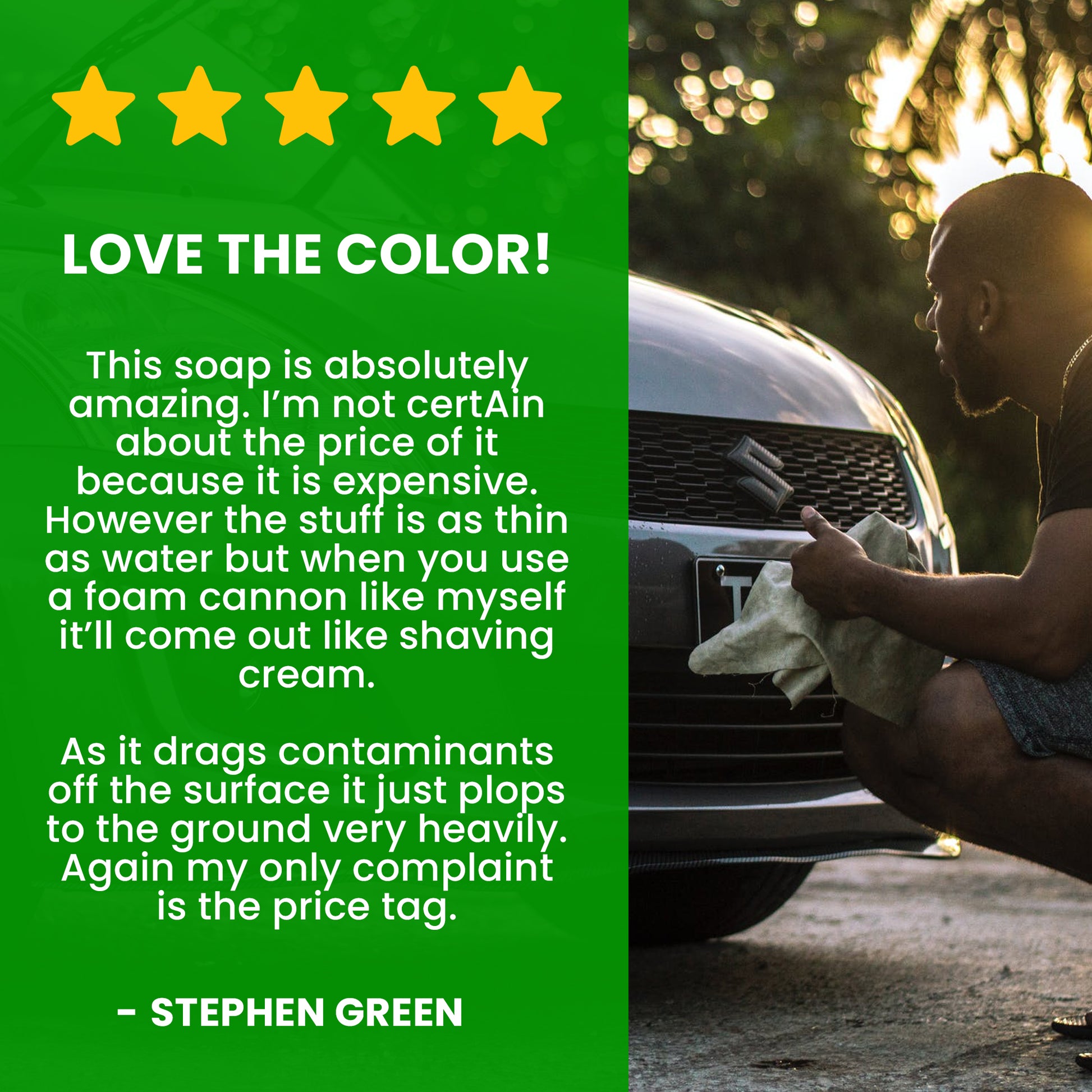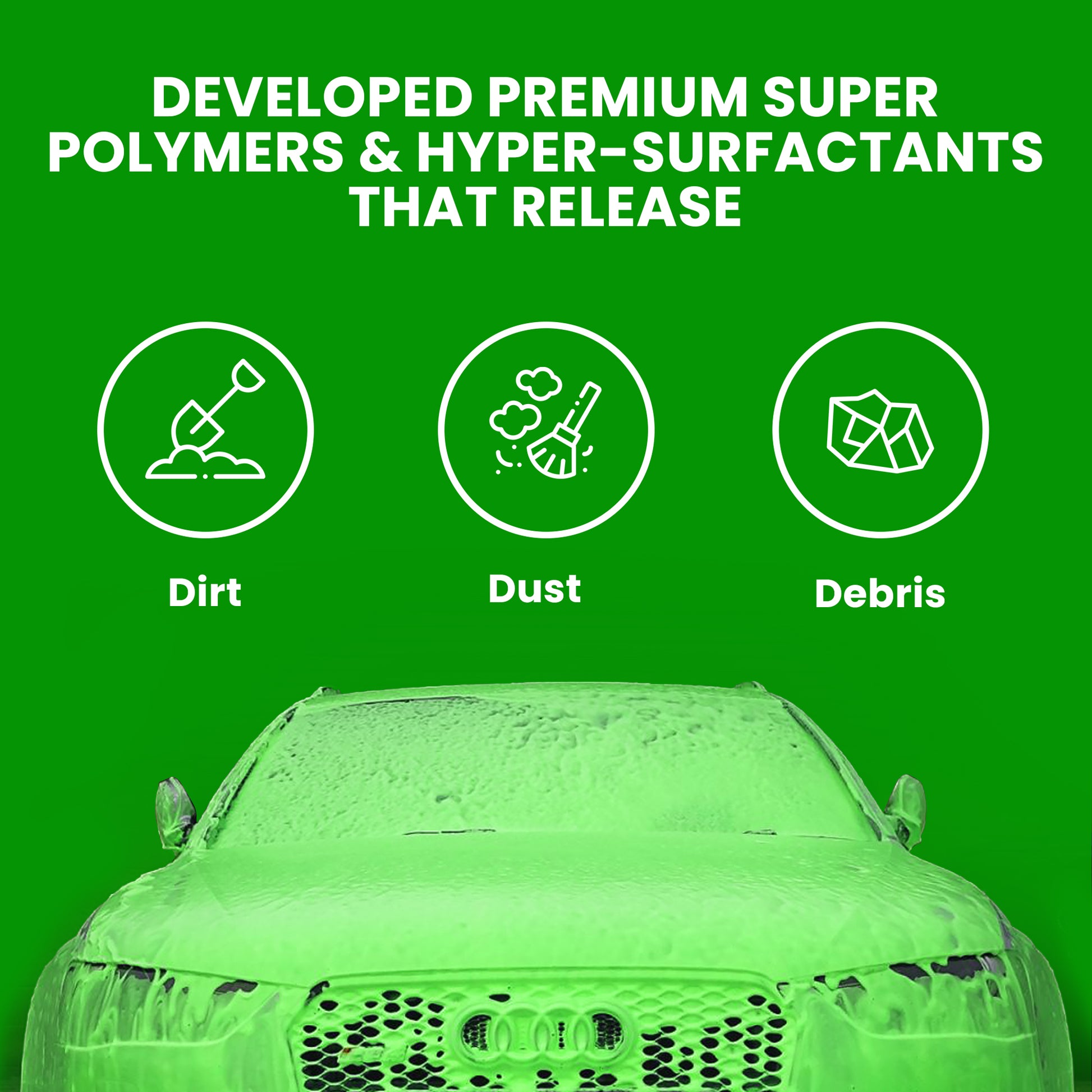 The secret to Hulk Foam Soap’s high performance detailing capabilities is in the chemistry. Improper washing causes scratches and swirl marks that dull paintwork. In order to take Hulk Foam Soap to the next level, our chemists developed premium super polymers and hyper-surfactants that release dirt, dust, and debris allowing them to simply be rinsed away for a scratch-free wash!